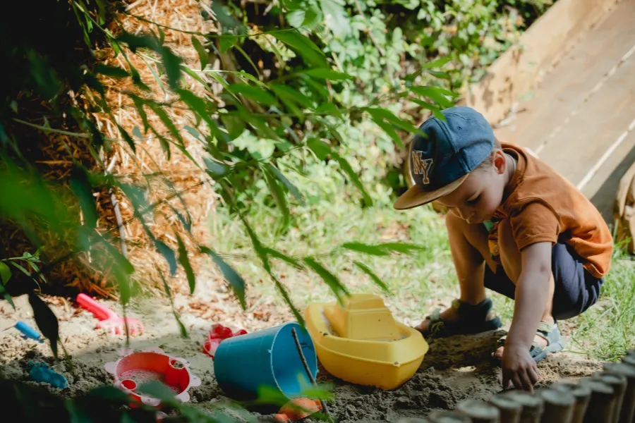 - Interior + exterior: kitchen area, lego & crafts, playground